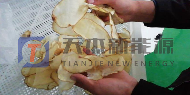 接下來(lái)是將土豆片分別放入托盤(pán)之中,放入土豆片烘干機(jī)進(jìn)行烘干,土豆片烘干用多少溫度合適?前期先用低溫定色,設(shè)置溫度40℃左右,再慢慢升溫,后期烘干溫度控制在60℃一70℃, 要求土豆片含水量為10%以下。
