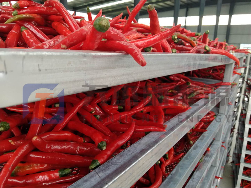 辣椒推入烘干房之后,我們根據(jù)不同的烘干要求,設(shè)置相應(yīng)的烘干參數(shù),同時在烘干過程中根據(jù)實際情況,做出相應(yīng)的烘干調(diào)整。辣椒烘干過程不需要進(jìn)行翻動,直到烘干完成。烘干一批次之后,進(jìn)行下一批次的烘干。這種適用于家用,種幾畝地的農(nóng)戶。