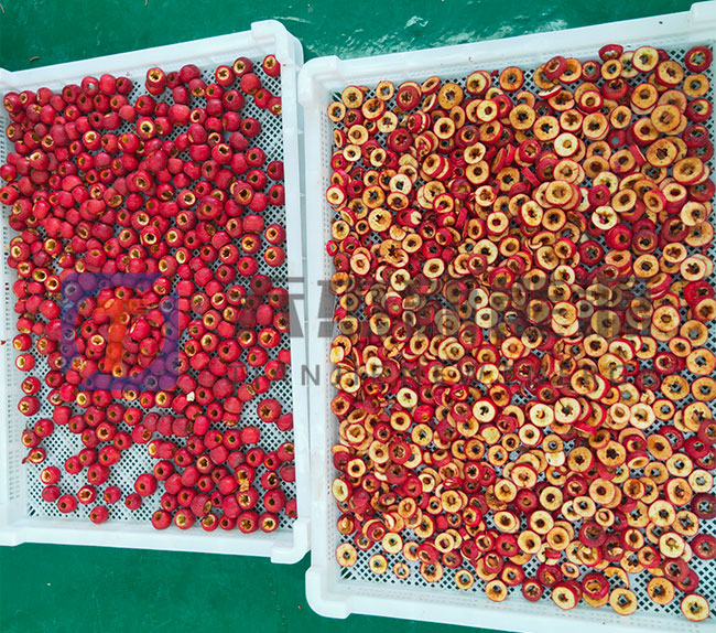 被全自動(dòng)山楂烘干機(jī)加工后的山楂干香脆可口,色澤鮮艷