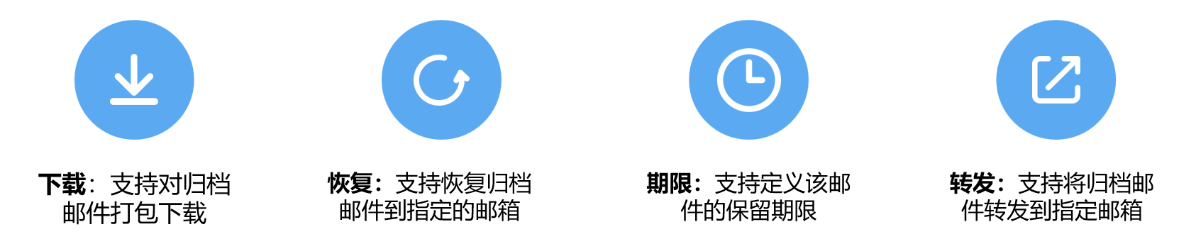 Coremail郵件歸檔模塊支持將系統(tǒng)備份的歷史郵件一鍵還原,包括對歸檔郵件打包下載、恢復郵件到指定郵箱、定義郵件的保留期限、將歸檔郵件轉(zhuǎn)發(fā)到指定郵箱等多種操作方式,保障資料交接不斷檔,業(yè)務連續(xù)不影響。