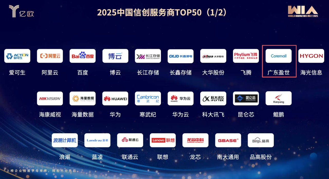 近日,億歐智庫(kù)《2025年信創(chuàng)產(chǎn)業(yè)發(fā)展趨勢(shì)及 50 強(qiáng)報(bào)告》重磅發(fā)布,Coremail憑借深耕行業(yè)的技術(shù)實(shí)力和信創(chuàng)落地的豐富經(jīng)驗(yàn)再次登榜50強(qiáng)!