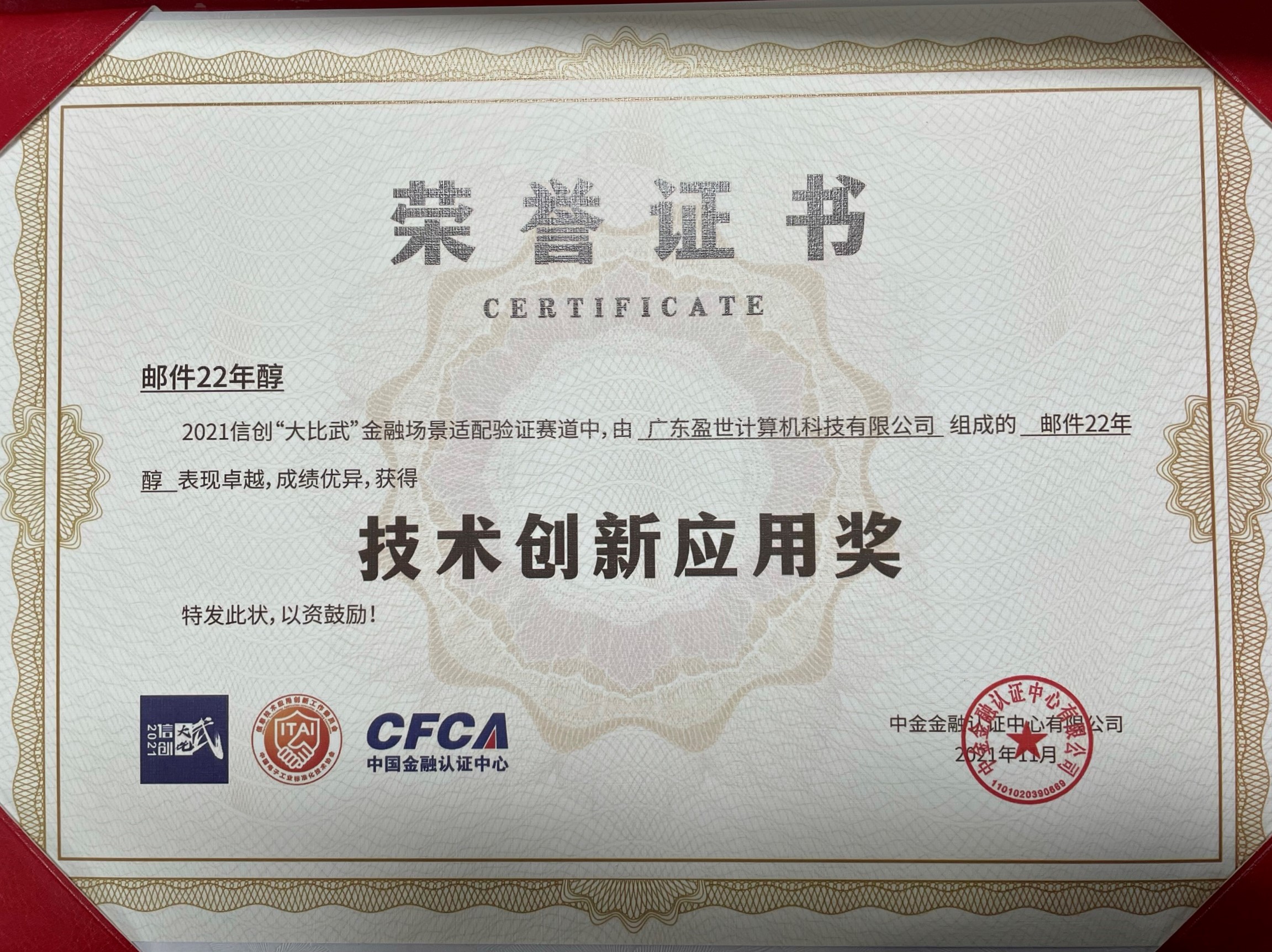 11月25日,“信創(chuàng)大比武”金融賽道頒獎典禮在線上隆重舉行,Coremail榮獲金融場景適配驗(yàn)證賽道“技術(shù)應(yīng)用創(chuàng)新獎”。