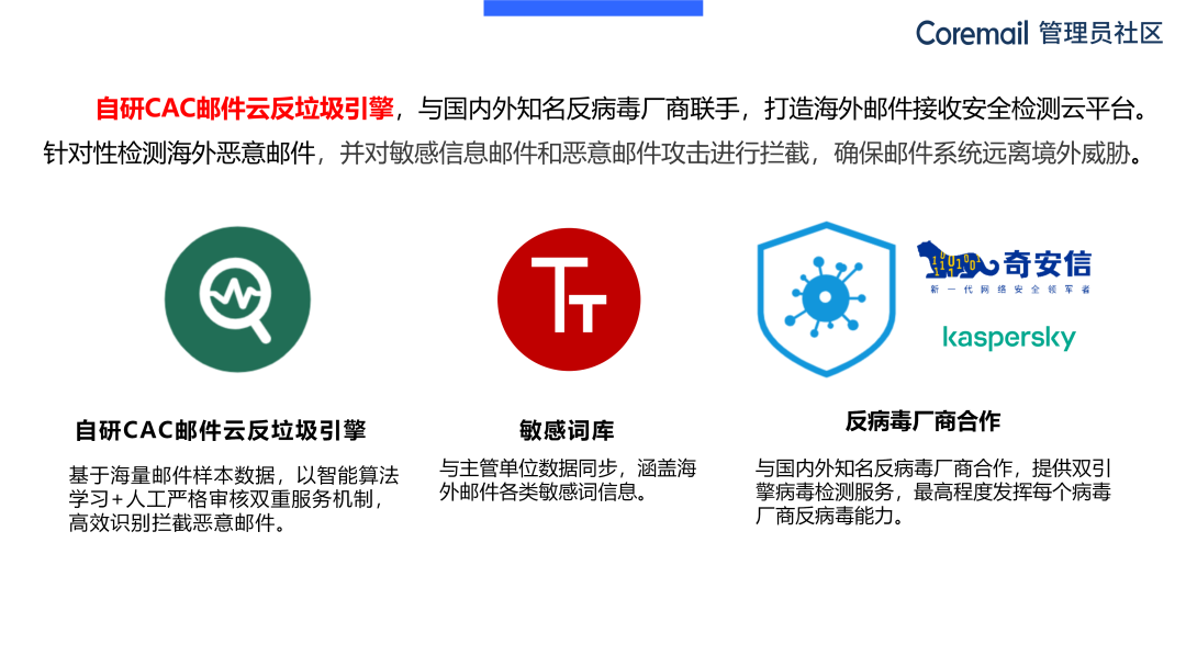 總體而言,Coremail安全海外解決方案擁有以下亮點(diǎn)。