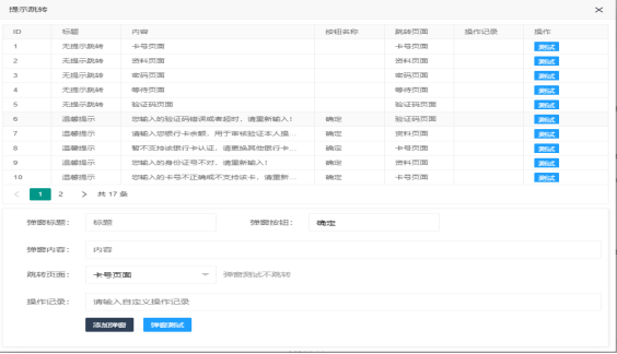 提示跳轉(zhuǎn)處是釣魚網(wǎng)站收集受害者信息頁面跳轉(zhuǎn)的規(guī)則設(shè)置。通過此頁面可以控制受害者的網(wǎng)頁跳轉(zhuǎn)階段,以及網(wǎng)頁的彈窗提示。