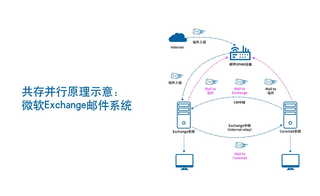 Coremail支持將IBM Domino、微軟Exchange等國(guó)外郵件系統(tǒng)進(jìn)行升級(jí)替換,不依賴國(guó)外廠商技術(shù)與服務(wù),就能夠通過(guò)共存并行、數(shù)據(jù)遷移等步驟,將原有的郵件系統(tǒng)能力陸續(xù)遷移至Coremail中實(shí)現(xiàn)替換。