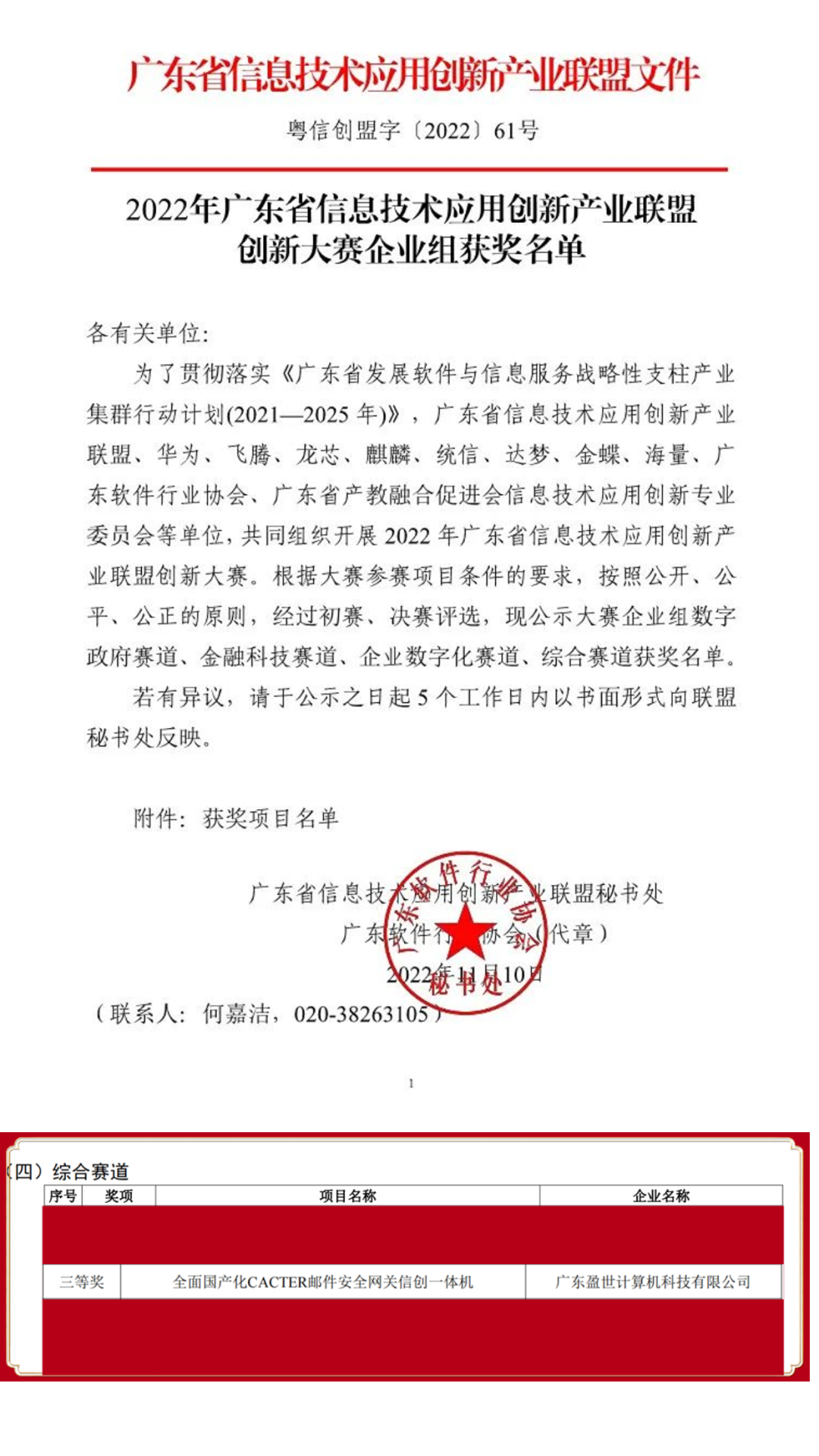 2022 年廣東省信息技術(shù)應(yīng)用創(chuàng)新產(chǎn)業(yè)聯(lián)盟創(chuàng)新大賽三等獎