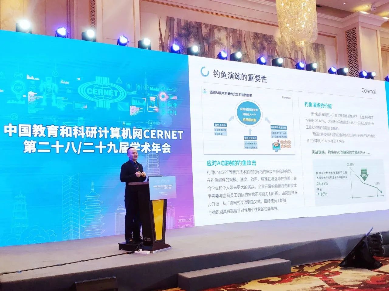 11月27日,中國教育和科研計算機網(wǎng)CERNET第二十八/二十九屆學術年會技術報告開講。Coremail副總裁吳秀誠與與會專家分享了《校園郵箱與郵件數(shù)據(jù)安全的信創(chuàng)探索與應用》,針對校園郵箱面臨的困境及釣魚郵件進行深度剖析。