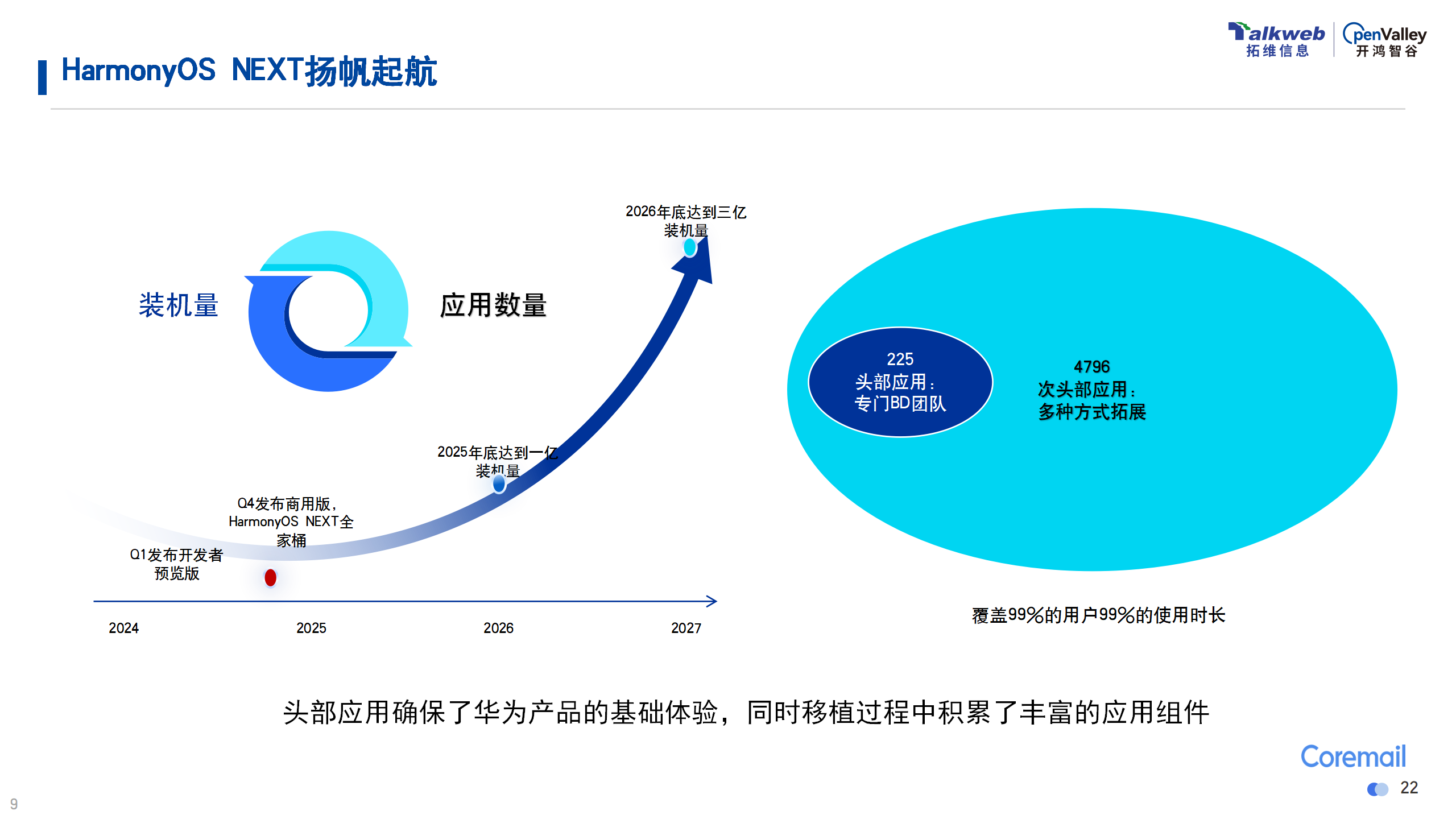 OpenHarmony專家、開(kāi)鴻智谷副總裁李傳釗以“OpenHarmony應(yīng)用發(fā)展機(jī)遇”為主題進(jìn)行分享。李總介紹,當(dāng)前鴻蒙OS成功躋身全球第三大操作系統(tǒng),萬(wàn)物智聯(lián)時(shí)代已經(jīng)開(kāi)啟。Coremail等行業(yè)頭部應(yīng)用的加入,保障了華為產(chǎn)品的基礎(chǔ)體驗(yàn),同時(shí)移植過(guò)程中積累了豐富的應(yīng)用組件,為后來(lái)者提供更便捷的開(kāi)發(fā)體驗(yàn)。