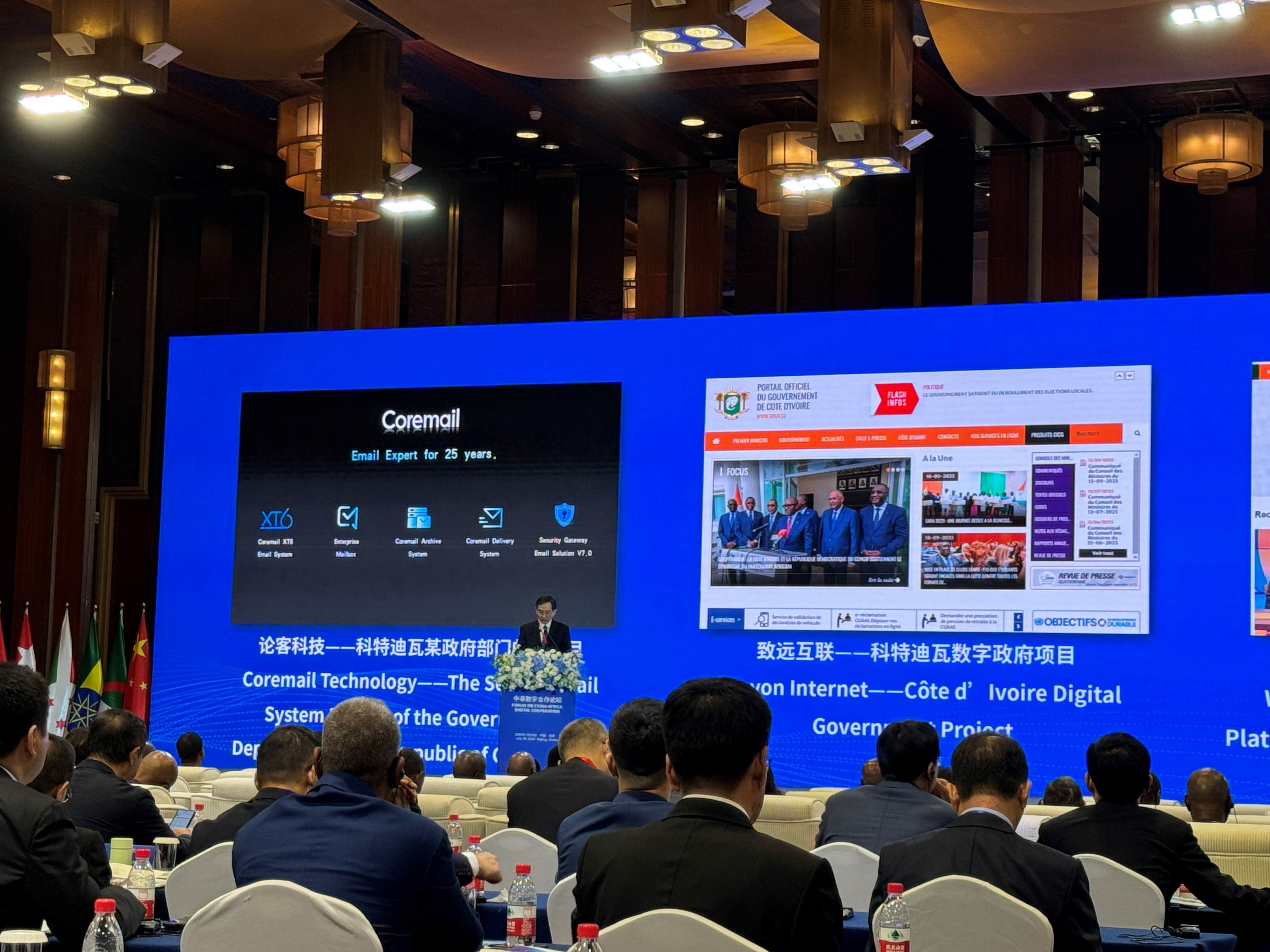 本次論壇以“共繪數(shù)字藍圖,共享發(fā)展成果”為主題。會上,中國與非洲26個國家共同發(fā)布了《中非數(shù)字合作發(fā)展行動計劃》。中國信息通信研究院發(fā)布了《中國助力非洲數(shù)字發(fā)展案例集》,由Coremail申報的“科特迪瓦某政府部門郵箱項目”入選,也是郵件行業(yè)唯一入選案例。