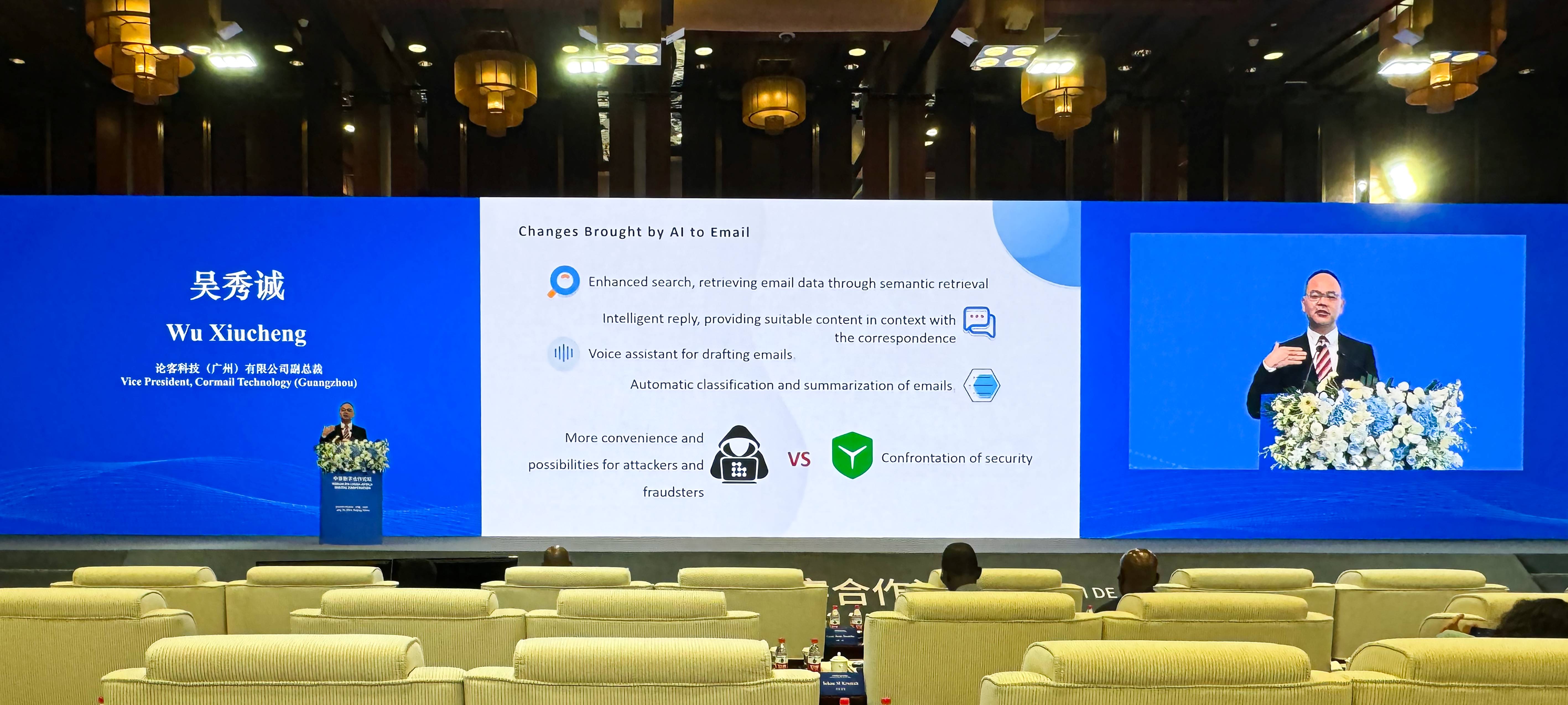 Coremail副總裁、ICAAN UASG UA大使吳秀誠分享了《基于AI的電子郵件安全防護體系》。