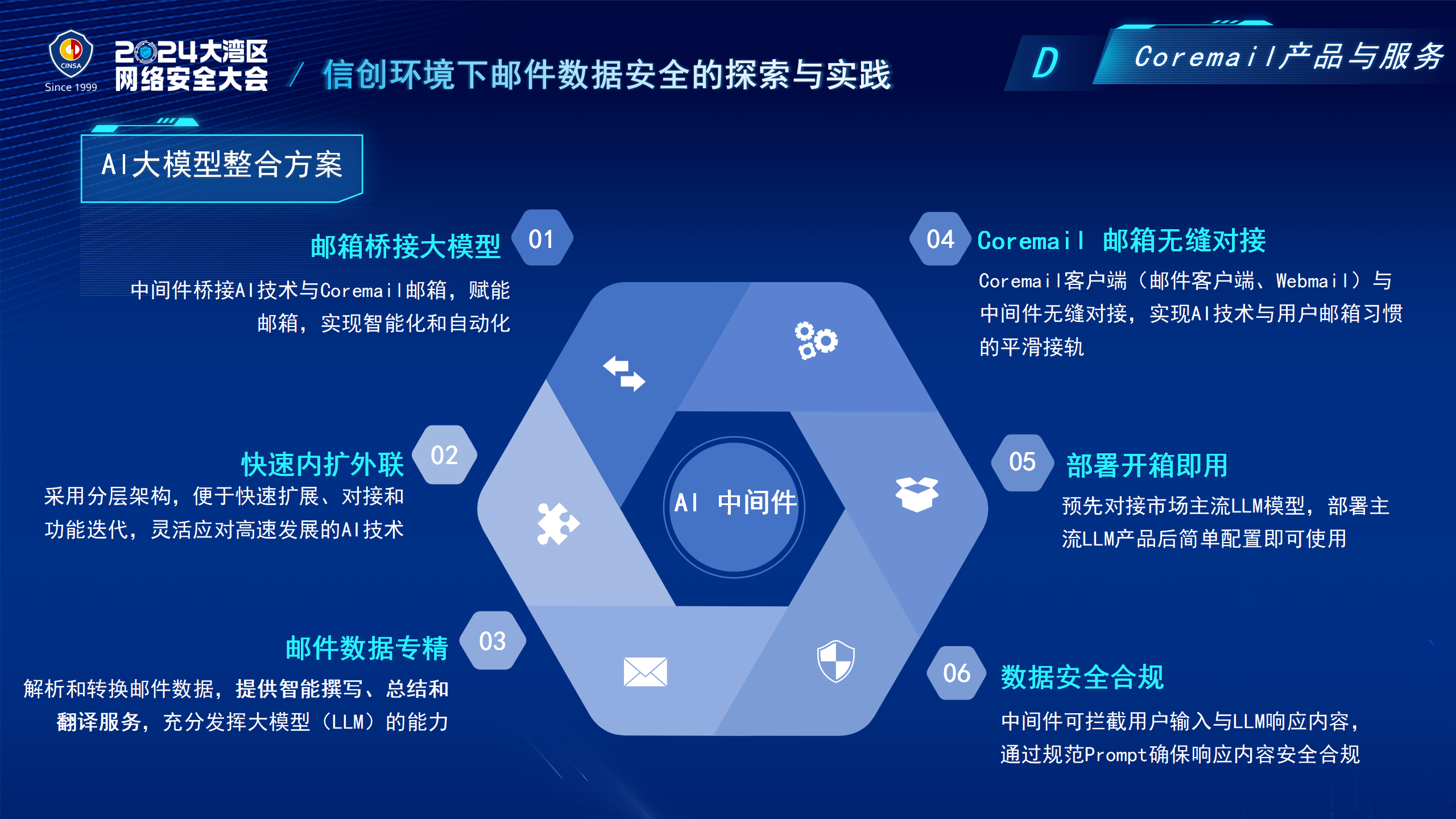 另一方面,Coremail也在積極探索AI賦能高效辦公,推出AI大模型整合方案,將郵箱能力解耦調(diào)用,以郵箱橋接大模型,實現(xiàn)智能化和自動化。