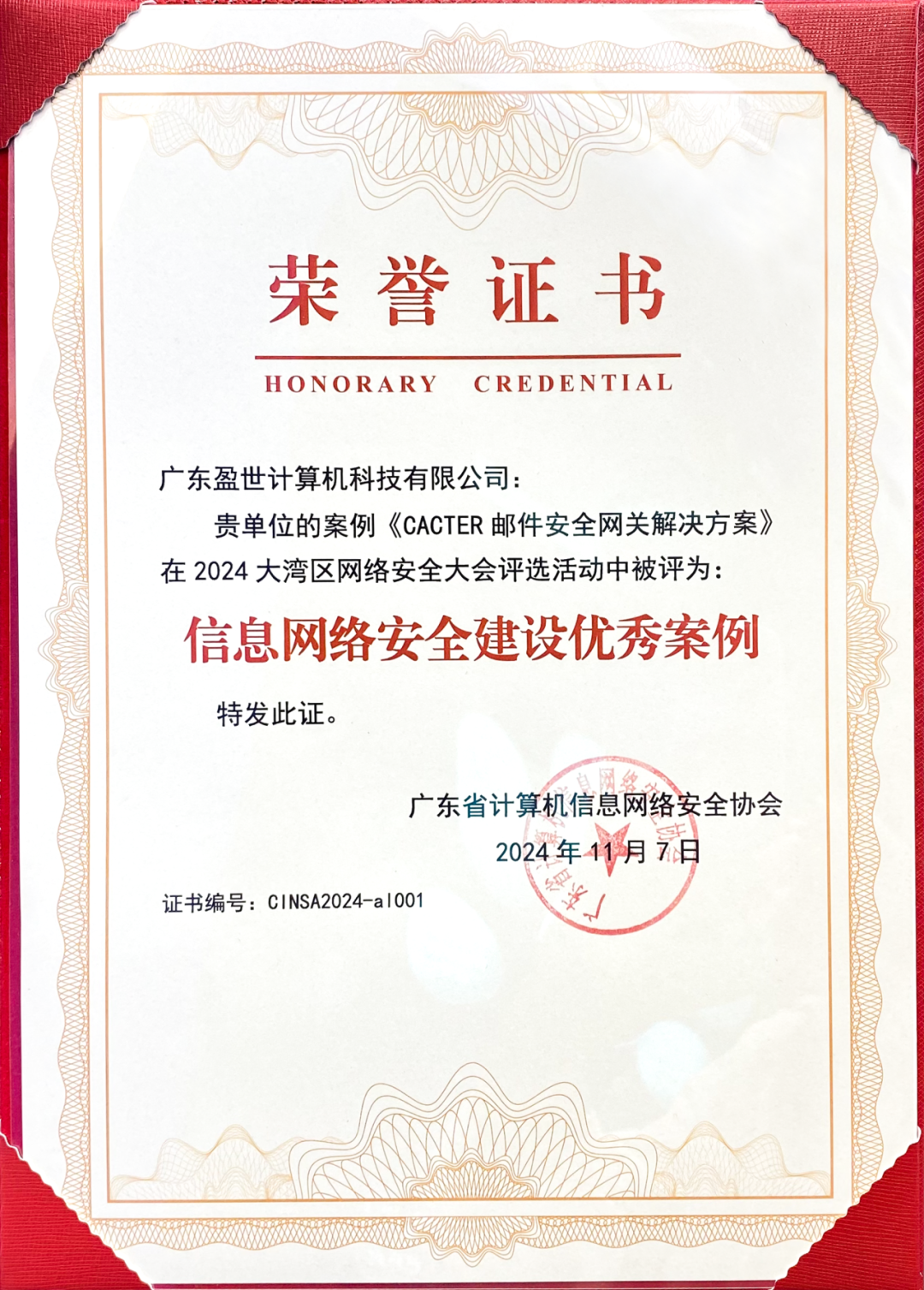 在大會的評選活動中,CACTER郵件安全網(wǎng)關(guān)解決方案不負眾望,榮獲“信息網(wǎng)絡(luò)安全建設(shè)優(yōu)秀案例”獎項。