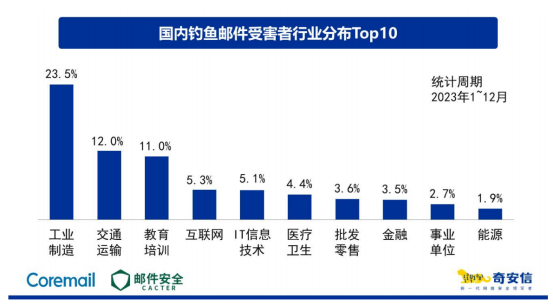 郵件安全向來是教育行業(yè)的一大痛點,由于教育行業(yè)的特殊性和重要性,國外勢力、黑產(chǎn)鏈條虎視眈眈,根據(jù)Coremail AI實驗室監(jiān)測分析,2023年度不論是收到的釣魚郵件數(shù)、垃圾郵件量,還是遭受到暴力破解攻擊的次數(shù),教育行業(yè)都居高不下。