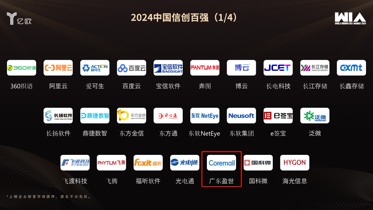 近日,億歐在WIM2024創(chuàng)新者年會上,公布“2024中國信創(chuàng)百強(qiáng)”榜單,Coremail憑借深厚的郵件技術(shù)積累、廣泛的信創(chuàng)適配和豐富的信創(chuàng)實(shí)踐案例,再次登榜!
