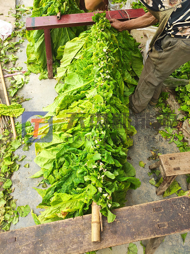 前期煙葉編裝的時候要使煙葉間距平均,有利于熱風進行循環(huán),這樣煙葉各部分才能受熱均勻,在綁桿的時候需要遵循一個原則,成熟稍差的煙葉放在溫度低的地方,成熟的煙葉放在中間層,過熟的煙葉放在溫度高的地方,當天采收的煙葉當天進入煙草烘干烤房。煙葉烘干的前期為變色期,使煙葉變軟,溫度需要控制在38度以內,濕度控制在90%以上