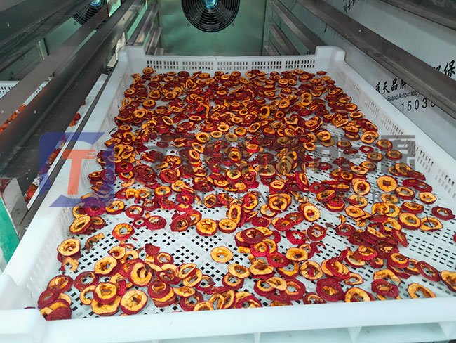 被全自動(dòng)山楂烘干機(jī)加工后的山楂干香脆可口,色澤鮮艷